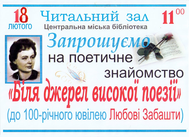 Поетичне знайомство до 100-річного ювілею Любові Забашти
