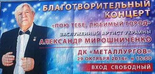 Благотворительный концерт заслуженного артиста Украины Александра Мирошниченко