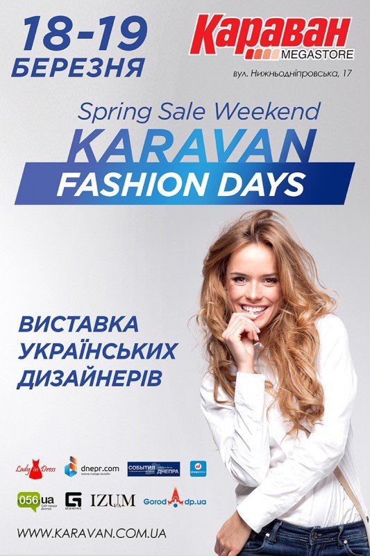 18-19 марта 2017 года в ТРЦ «КАРАВАН» в Днепре уже традиционно состоится модный шопинг проект – выставка украинских дизайнеров «KARAVAN FASHION DAYS», где соберутся лучшие производители Украины, которые смогут не только продемонстрировать свои эксклюзивные коллекции, но и продать их посетителям.