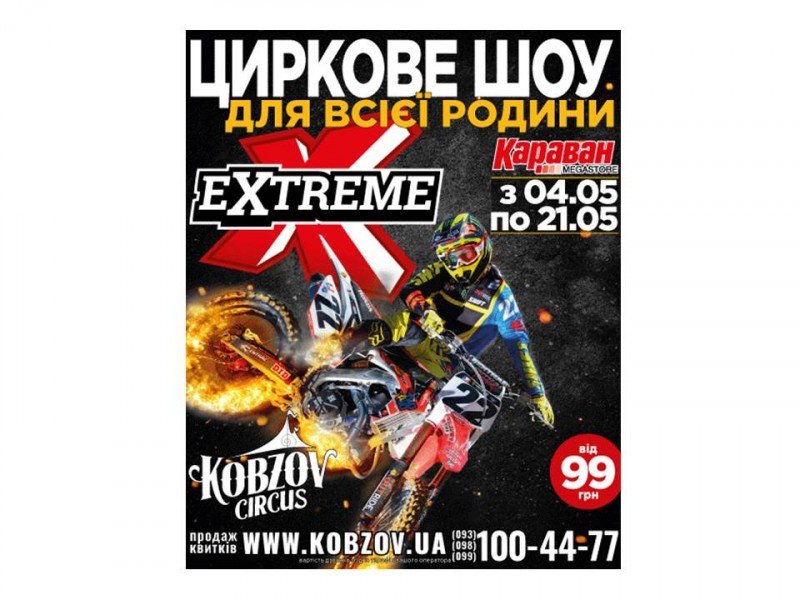 С 4 по 21 мая на территории ТРЦ Караван для всех гостей и посетителей будет работать Цирк Кобзов с новым шоу для всей семьи «Extreme»!